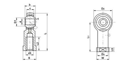 1.For Left-hand thread suffix"L"is added to bearings number and thread sign e.g.PHSB6L M3/8×24gL 2.The surface of spherical plain with a bronze line